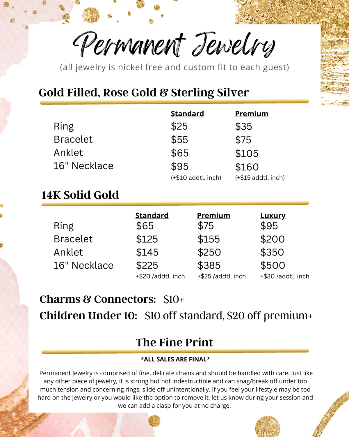 Our Permanent Jewelry Experts will be happy to meet with you and show you our collection of chic, timeless chains.